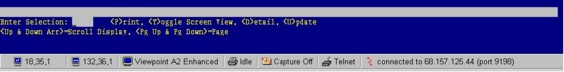 You then have a choice of <U> to continue to Update, <V> to View Status, <P> to Print or <C> to Continue.